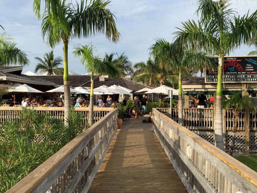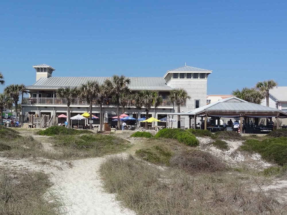It is located right across the street from Pensacola Beach in front of the Lafitte Cove Marina, and it is known as a favorite seaside hangout because it features a labyrinth of bars, dining rooms, tiki huts, and a sandy play area for children.