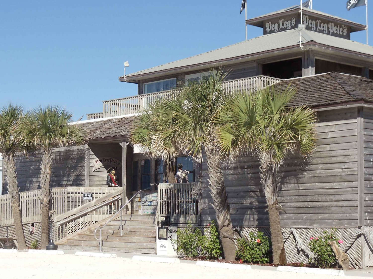 Peg Leg Pete’s is an old-school beach bar located in Pensacola Beach. License plates may be spotted decorating the walls of the establishment.