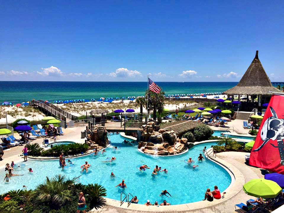 This beachfront hotel in the Panhandle’s major draw is its oceanfront setting, where you can unwind in roomy suites and rooms after enjoying a hot tub, rockslide, game room, and poolside bar and restaurant.