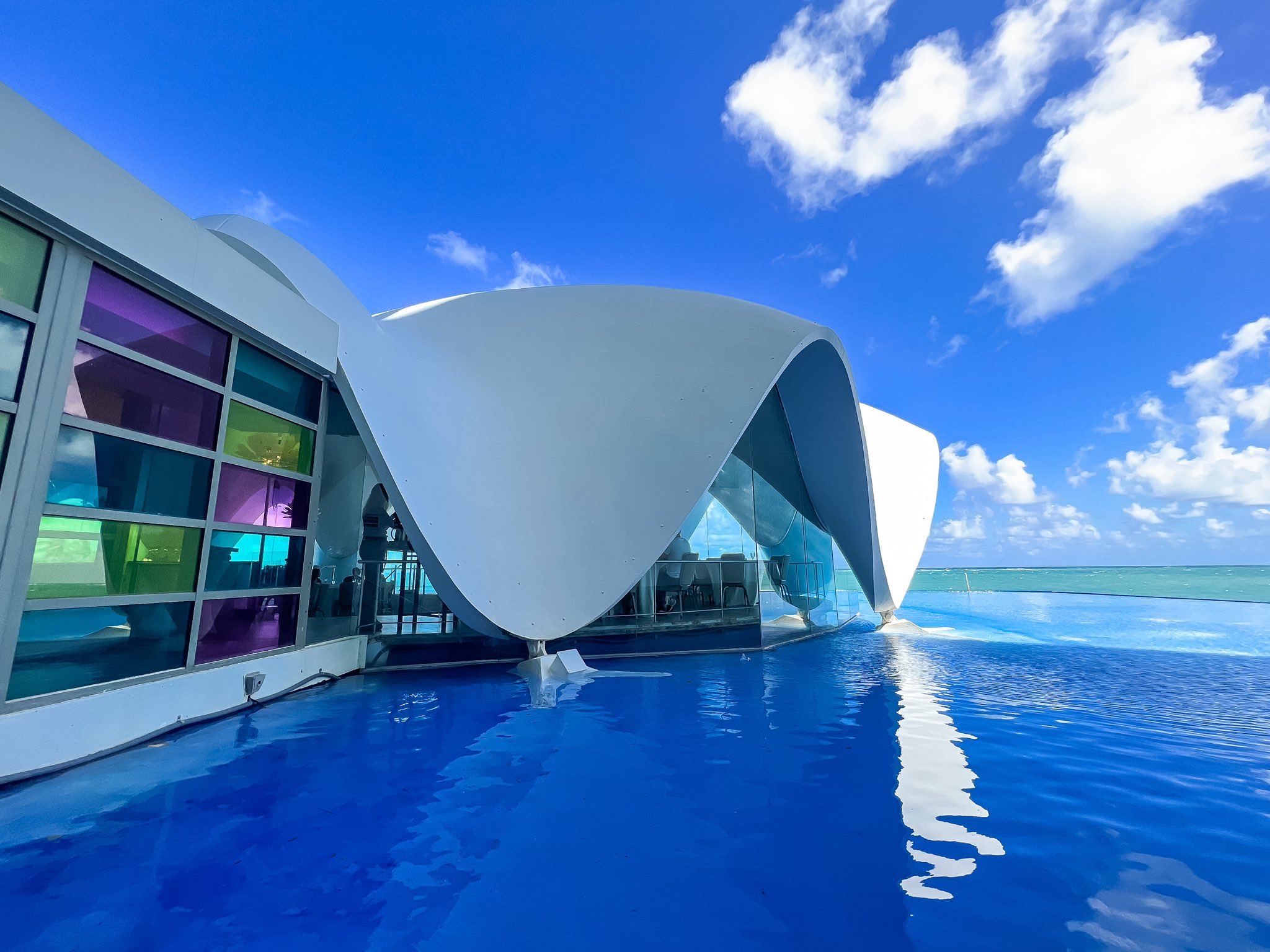 There are three swimming pools, one of which is an infinity pool reserved exclusively for adults, a fitness facility with panoramic views of the ocean, chic restaurants where guests may dine while staring out at the azure waters of the Caribbean, and an on-site casino.