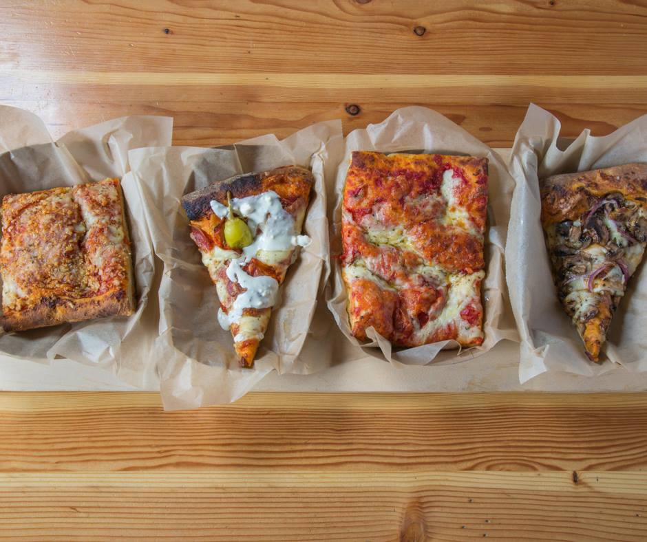 Slab is a Sicilian-style restaurant featuring pizza and street cuisine located in the other Portland on the East Coast. To portray its actual origins, the dough is prepared in a “old world” manner by hand mixing.