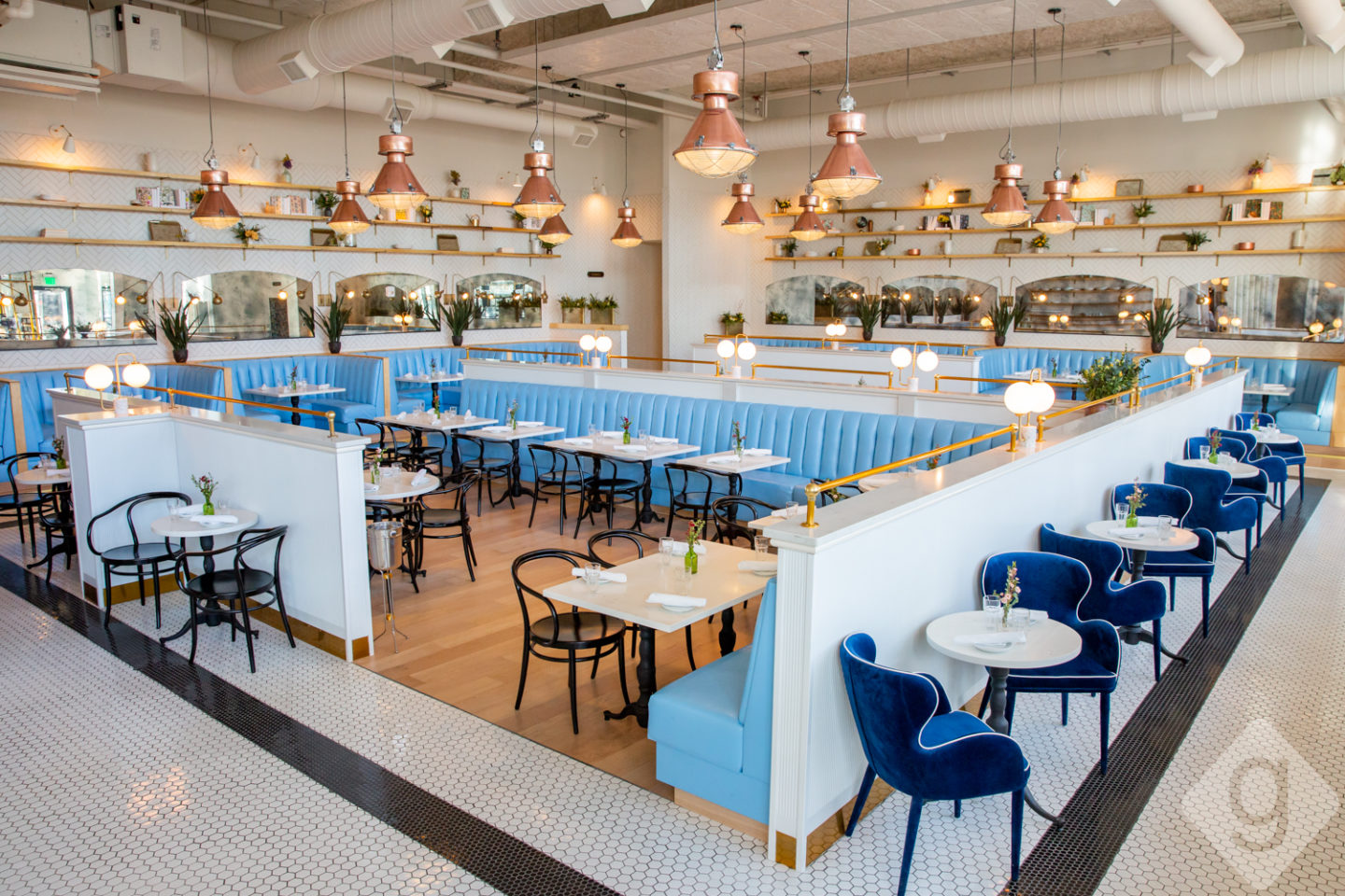 The restaurant exudes the atmosphere of a traditional French brasserie while incorporating contemporary elements from the South.