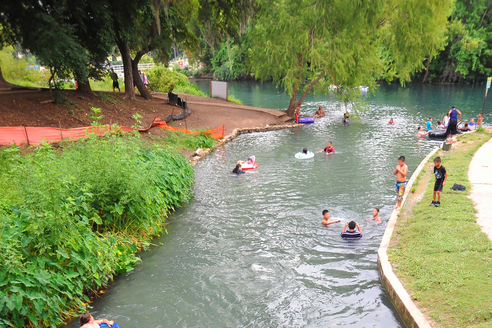 The city park located directly beside Strahan Basketball Stadium is a popular place for locals to begin their tubing adventures on the San Marcos River.