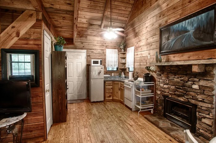 This 224-square-foot cabin is perfect for a weekend getaway, and it comes with stunning views. It is a treehouse-style cabin that prohibits kids. Instead, it’s a secluded location for lovers set above a sizable cliff with numerous caves.