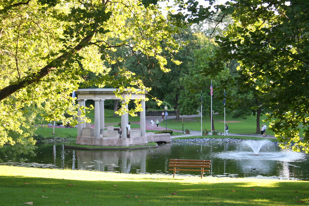 Monuments, memorials, and statues may be found dotted around the 80-acre Washington Park, which also features peaceful strolling routes, ponds, and forested glens.
