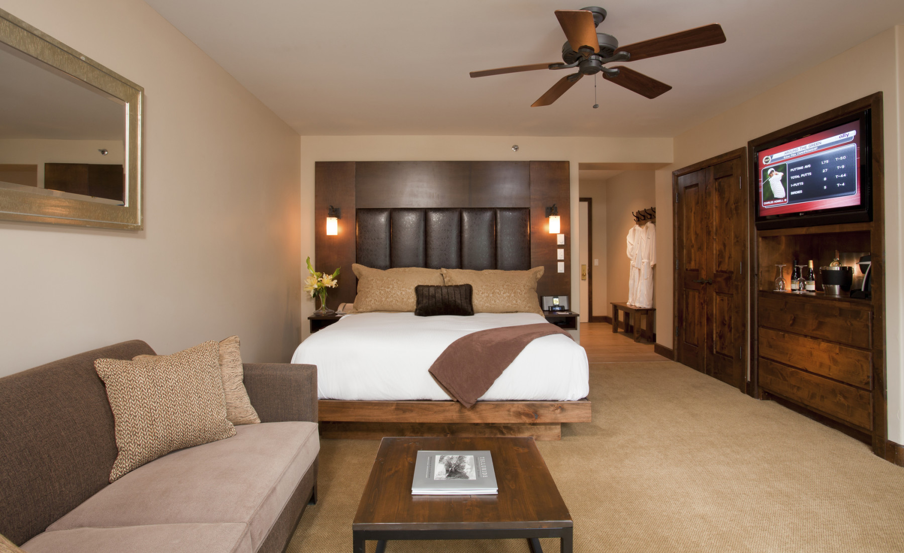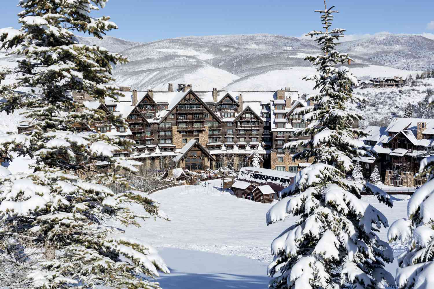 It dominates Bachelor Gulch Mountain’s foothills and offers premium suites with marble baths and soaking tubs.