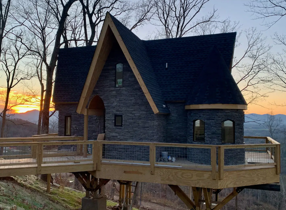 It is a distinctive treehouse with a theme throughout that mixes together elements of the Hogwarts universe in a gothic treehouse placed near Woodfin, North Carolina.