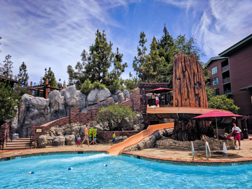 Between park visits, a lot of people like to stop by the Monorail Pool complex to swim or ride the waterslides there.