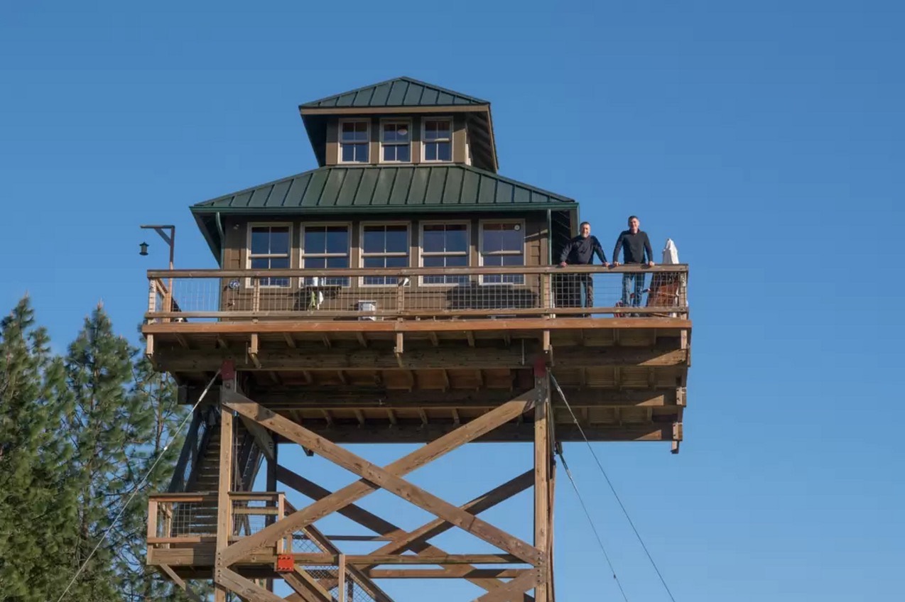 This contemporary home was designed to resemble the Fire Lookout Towers that were constructed by the United States Forest Service in the early 1900s.