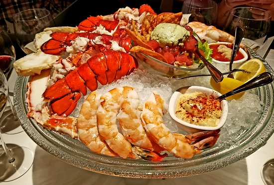 On the menu, you’ll find an impressive selection of seafood, such as fresh oysters, tuna that’s been prepared for sushi, and lobster from Maine.