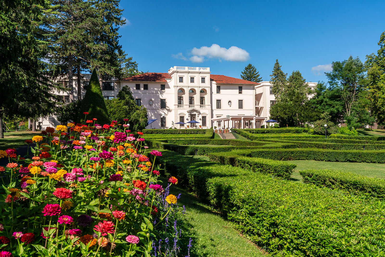 The ancient hotel offers magnificent guest rooms, including opulent suites with views of the lake and gardens. For a longer stay, you can also reserve a lodge room or suite, the Hermitage private luxury suite, or a two-bedroom apartment.