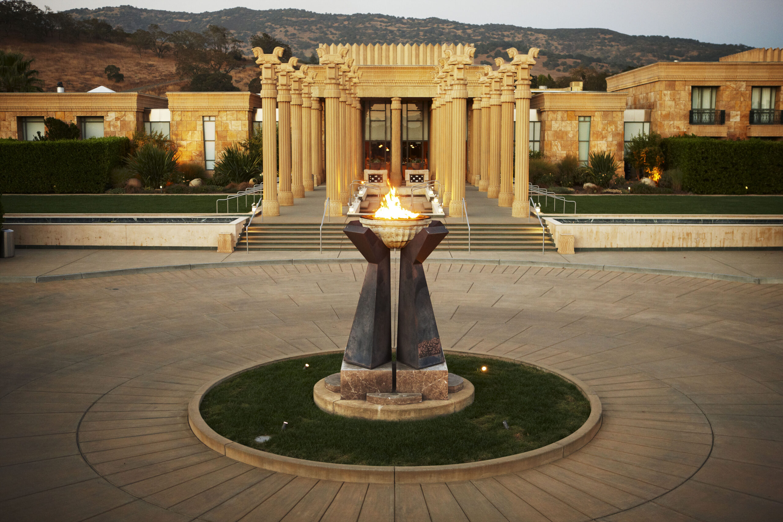 Towering pillars in old Persian design, lily ponds, and block limestone line the entrance to Darioush, giving the area an air of the Mediterranean. The inner wine tasting rooms are located in the wine caves near to the barrels, creating a genuine environment for wine sampling.