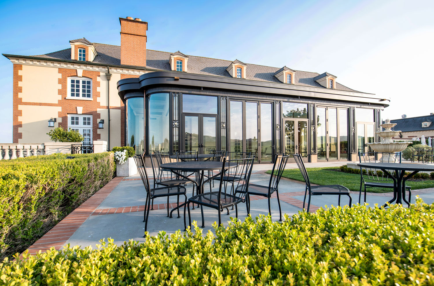 On the terrace, which overlooks the California countryside, visitors can sip on a variety of sparkling wines and pinot noirs while taking in the scenery. Professional sommeliers oversee each sampling, and delectable delicacies like charcuterie, cheese, and caviar can be ordered as an add-on.