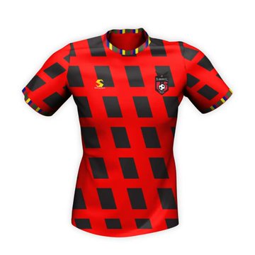The home jersey, which has the team’s traditional black and red color scheme, has a dazzling design, and the multicolored bands on the collar and sleeves are wonderful embellishments.
