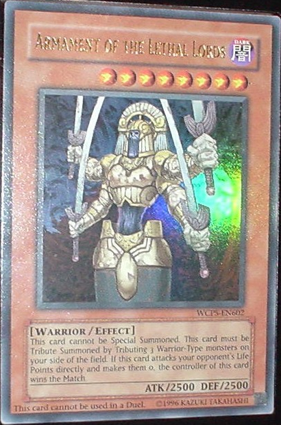 Another card awarded as a prize in a tournament is called the Armament of the Lethal Lords, and its value far exceeds that of the paper it was printed on.