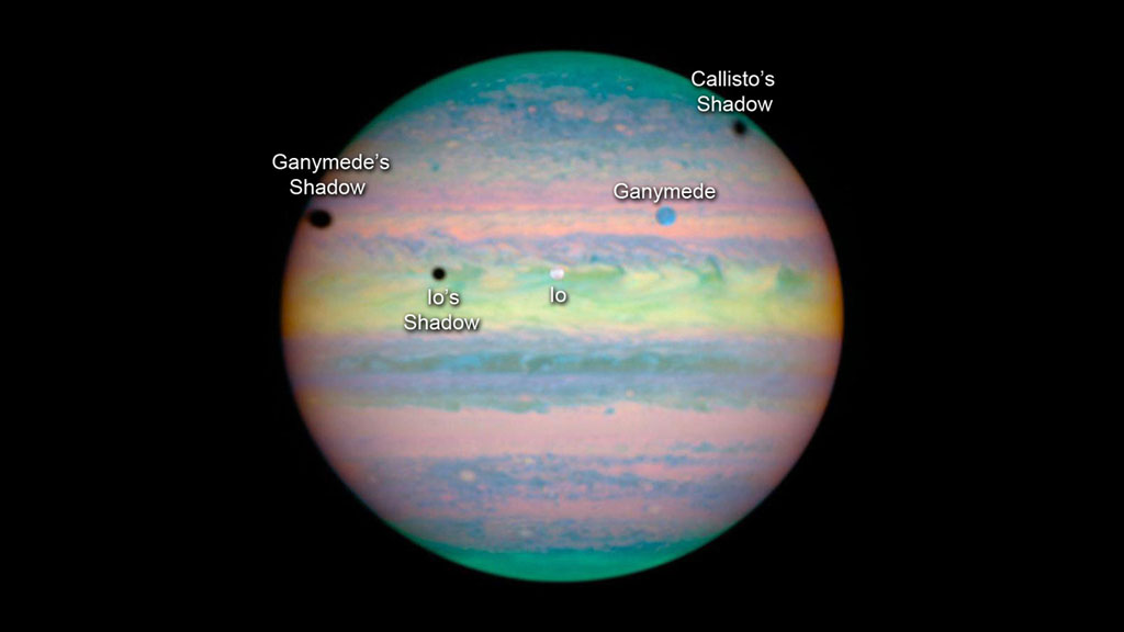 While we marvel at lunar and solar eclipses, this triple eclipse across the face of the gas giant would be awesome.