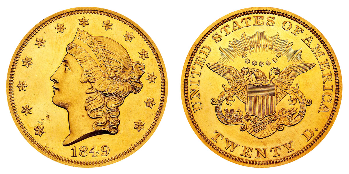 This event is known as the California Gold Rush. During this time period, the United States Mint introduced two new denominations of gold coins, one of which was the $20 1849 Double Eagle.