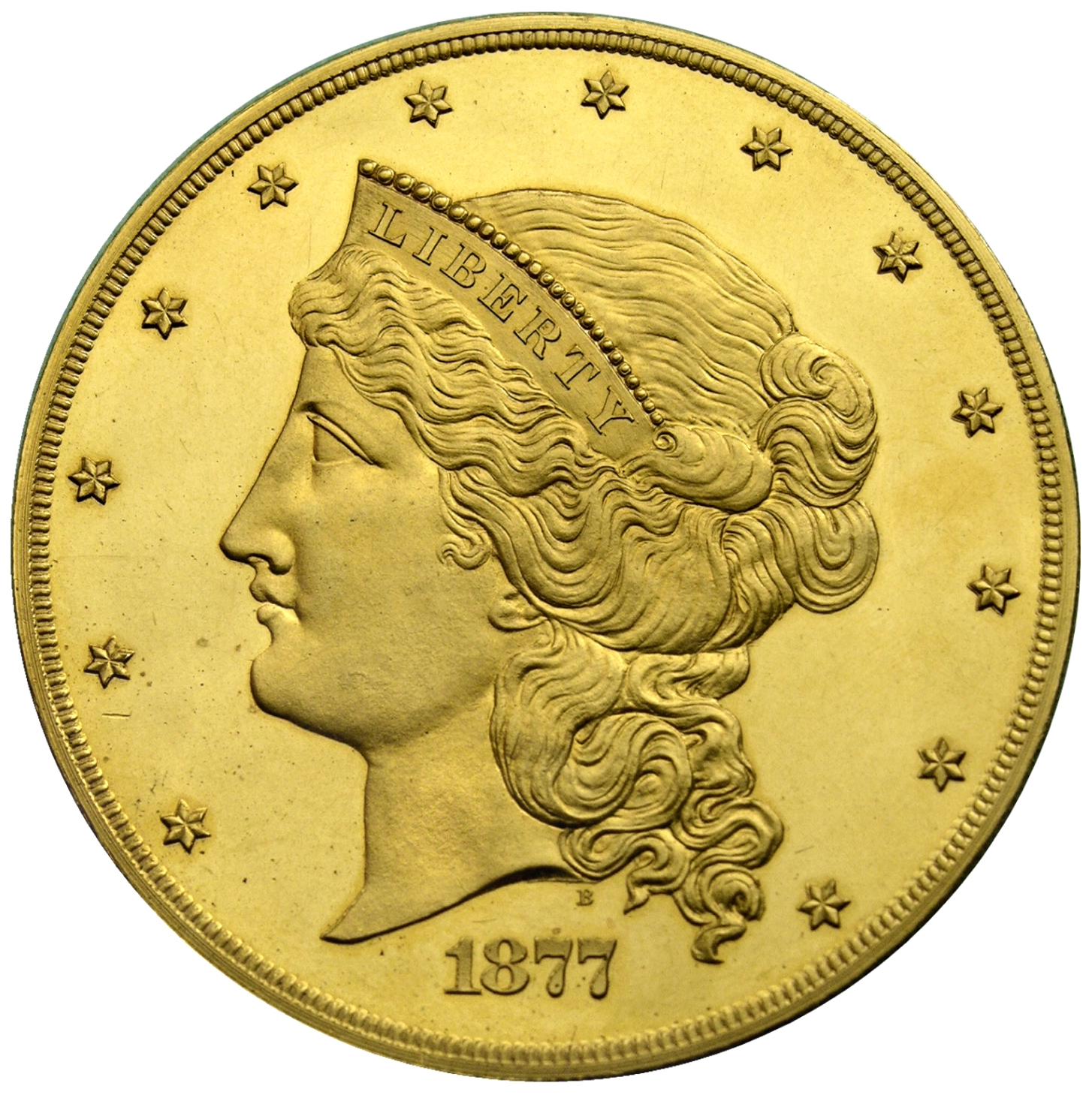 The 1877 Half Union has a face value of $50 and was struck as a pattern or coin that was never intended for public circulation.