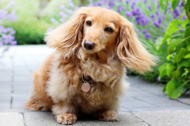 These long-haired Dachshunds are quite rare, and their coats typically have a red sable colour with black tips.