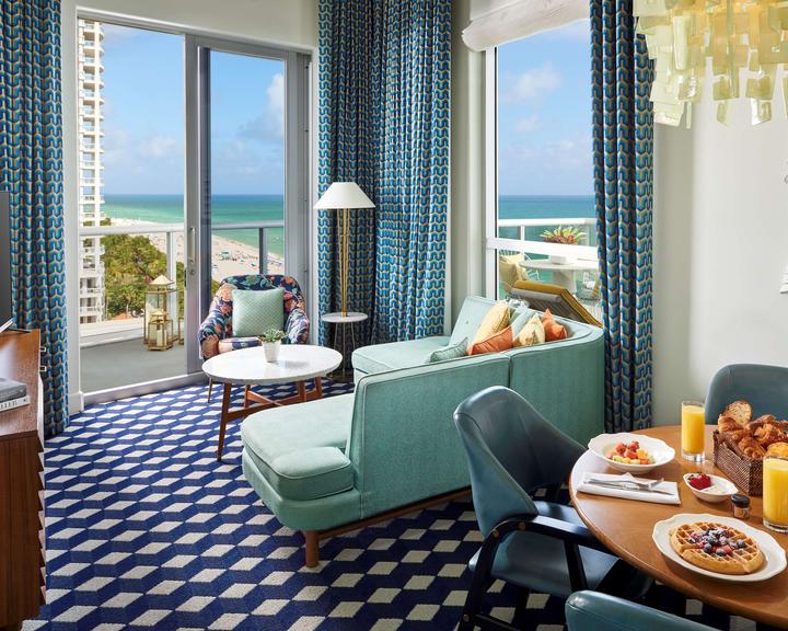 When you reserve a Miami Suite at The Confidante Miami Beach with a balcony, you’ll be surrounded by brilliant blues and greens while taking in the soft ocean wind and an Art Deco feel.