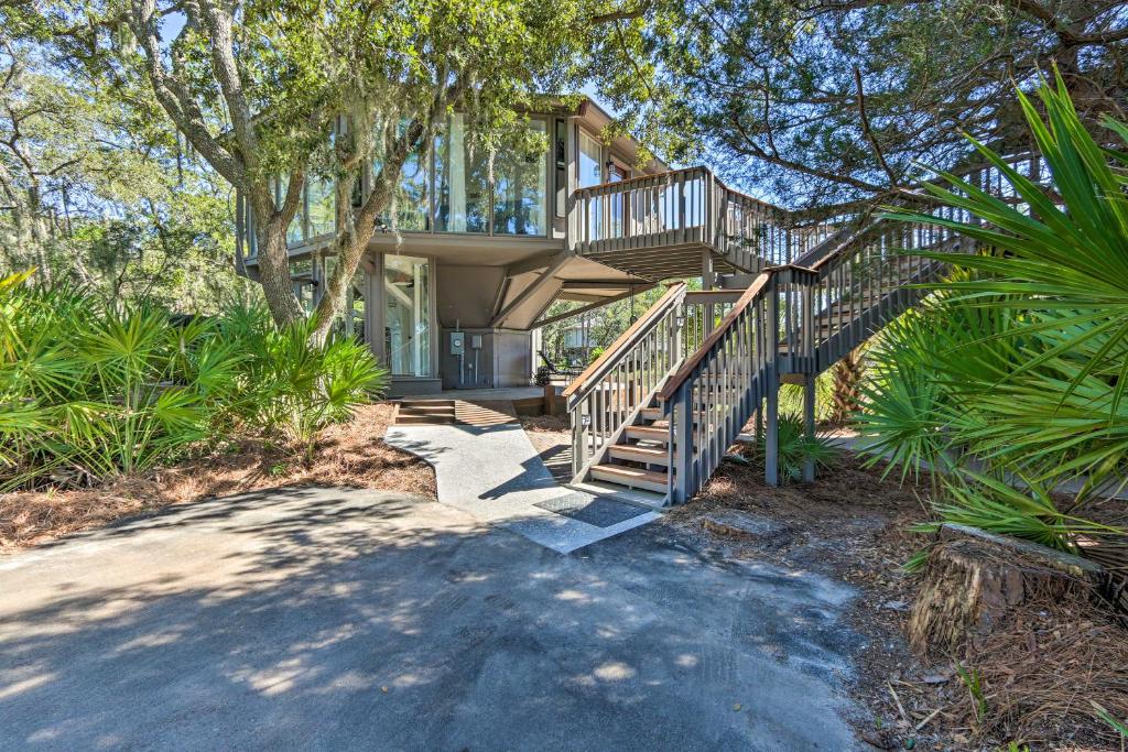 This magnificent Hilton Head Island treehouse is situated in Sea Pines, a short distance from Harbour Town by car or bicycle, and adjacent to marinas, boat rentals, lagoons, and rivers, which make it particularly well-liked by boaters.